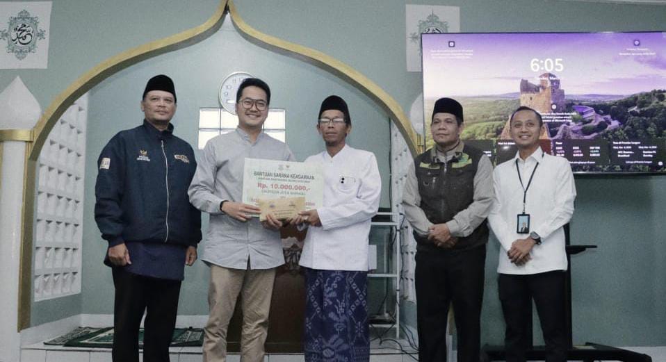 Dalam kesempatan itu, Adhitia menyerahkan bantuan tunai kepada pengurus masjid serta masyarakat yang membutuhkan.